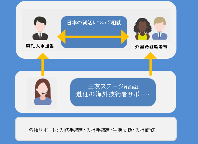海外人材導入に伴って発生する、国籍を問わない社員の受け入れ手配をトータルサポート。 住宅手配、役所手続きへの同行、携帯電話の契約など外国籍社員様へのあらゆるサポートしております。 貴重な外国籍人材へ、日本にての開発に慣れるまで全力的なサポートを御提供いたします。手続きのサポート